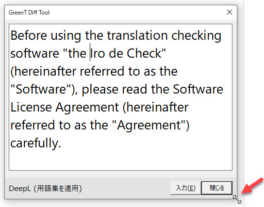 ウィンドウの隅をドラッグしてサイズを変更できます。表示される文字サイズはGreenTのダイアログの文字サイズと同じです。