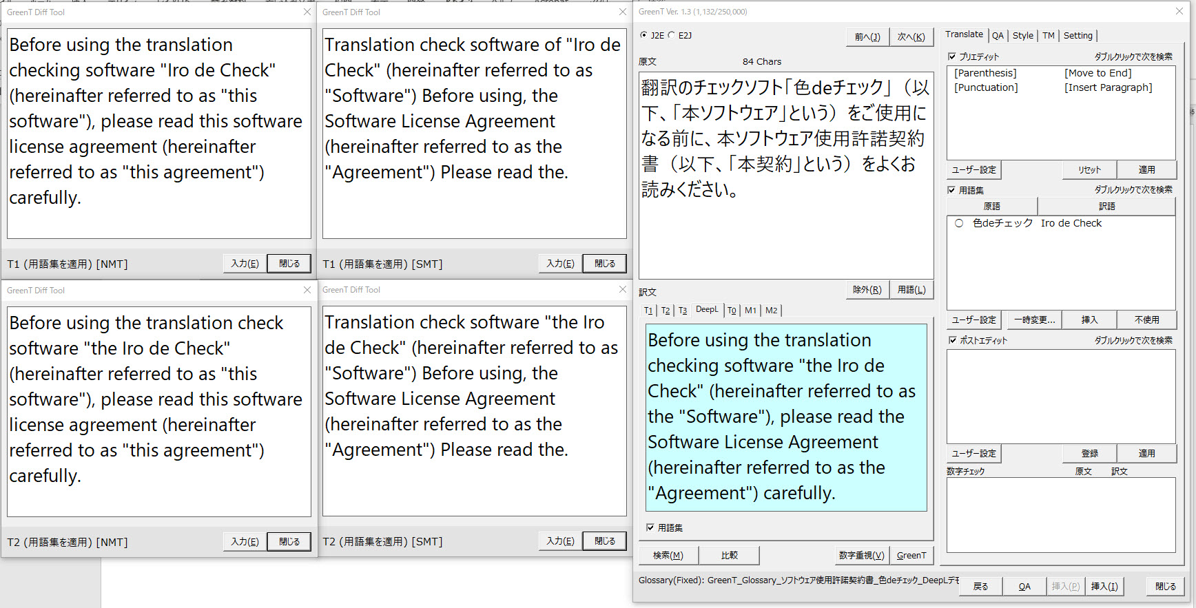 GreenTでは様々な方法で翻訳できます。用語を適用したり異なる翻訳エンジンを使ったり。それらを並べて比較する方法を紹介します。