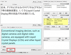 左欄に表示されるのは[比較]ボタンをクリックしたときに選択されているタブの訳文です。