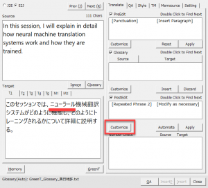 オフにすると、上記の準備で説明したように[Customize]ボタンにて登録した語句のみが指摘されるようになります。