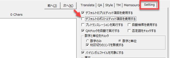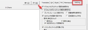 以下のように[Setting]タブの[デフォルトのポストエディット項目を使用する]をオフにしてください。