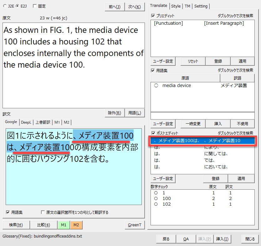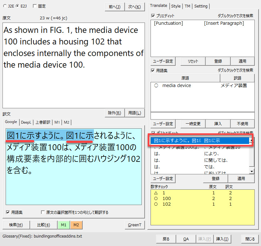 このような場合に、既知の項目について事前に登録した内容を自動で検出して修正候補を提案します。明かな誤訳・誤表記については自動で修正するように設定もできます。