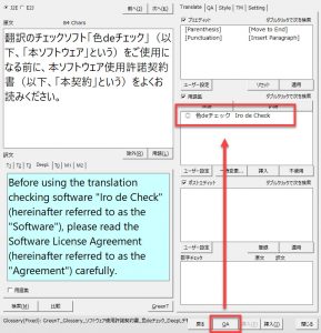 訳文を修正した後には、必ず[QA]ボタンをクリックしてQAチェックを行ってください。