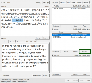 用語集の訳語を今回の文章では適用しない場合、以下の[Discard]ボタンをクリックします。