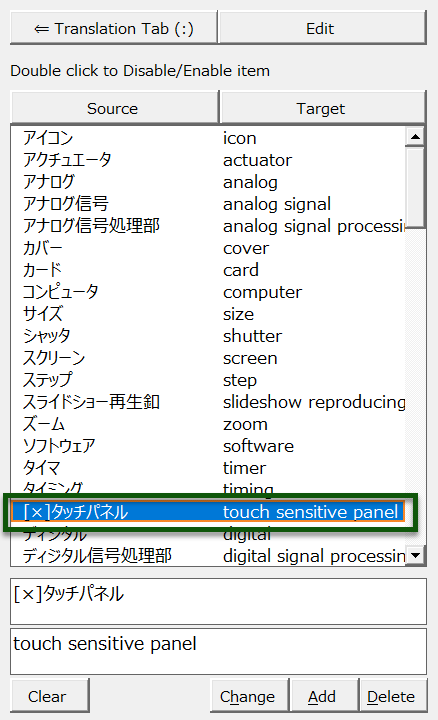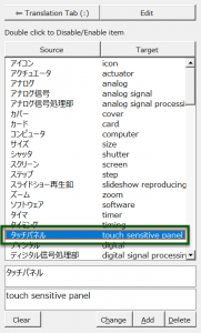 下の欄に原語と訳語が表示されますのでここで編集します。