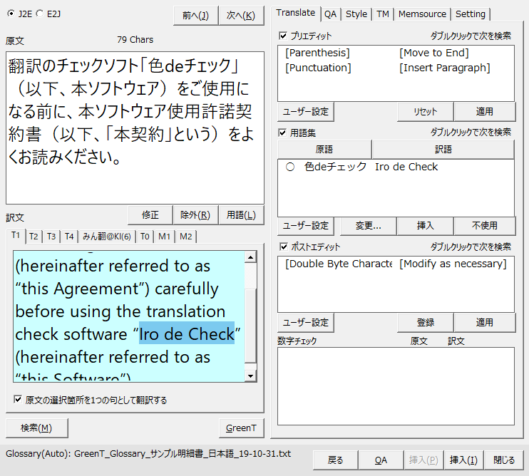 上記の例では訳文の出力前に登録をしましたが、訳文を完成後に訳語を登録する場合も考えられます。その場合は、以下のようにします。