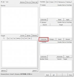 [用語集]リストの下にある[ユーザー設定]ボタン([Customize]ボタン)をクリックすると用語集の編集タブが表示されます。
