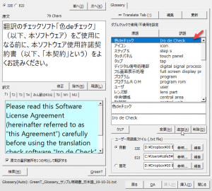 まず、Target欄で登録する訳語(Iro de Check)を選択します。