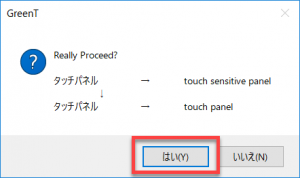 「タッチパネル」に「touch sensitive panel」と訳語が定義されている場合に、「touch panel」に修正する方法を紹介します。