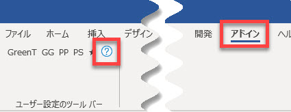 GreenTのヘルプダイアログを[アドイン]タブにある以下のボタンから起動します。
