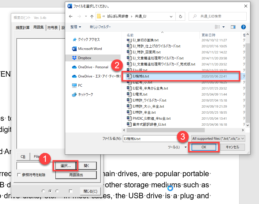 [選択]ボタンをクリックして用語集ファイルを選択します。