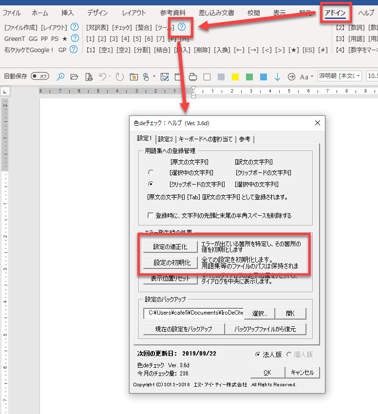 Wordで動く翻訳チェックソフト「色deチェック」をご利用中の方で、更新手続きをしたのに有効期限が更新されない場合があります。 その場合、以下のページから最新版をダウンロードしてアップデートをお願いし ...
