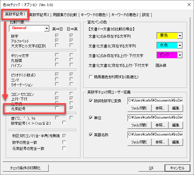 - 用語集でのチェック時に「用語の正しい適用箇所を着色する」をオフにします。