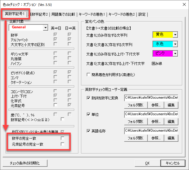 それぞれ、チェックのオプションダイアログでオフにできます。ダイアログでは、「完全一致」という言葉を使っています。数字の出現頻度と記載順序が一致しているのかどうかを判定するという意味です。