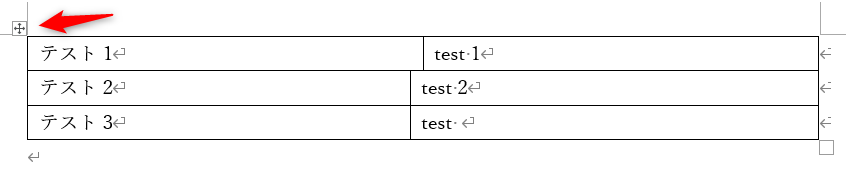 表の一番左上にカーソルを置くと、表を選択する+記号が出てきますからそれをクリックしてください。