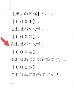 以下のように抜けている[0002]段落は空欄になります。2回記載のある[0004]段落は先に書かれた赤文字の段落が書き出されます。