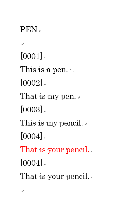 以下のように赤文字の[0004]段落が書き出されます。今回のように段落番号が複数回記載されている場合には、文書の先に書かれている段落が優先的に書き出されます。