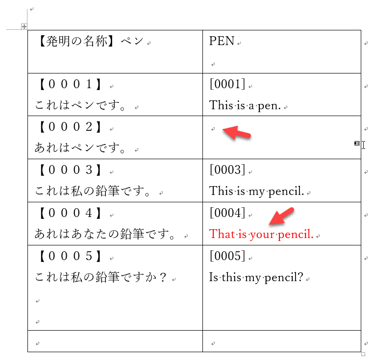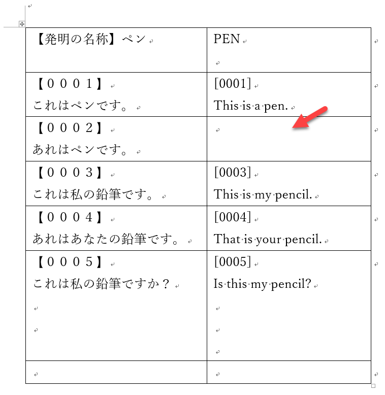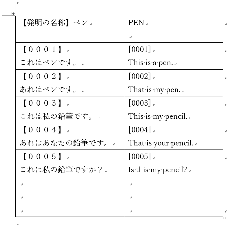 特許明細書から対訳表を作成する際の、段落番号の対応ルール