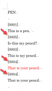 この場合、抜き出された段落は番号順に記載されますので、訳文が段落番号順に記載されている場合と同じ対訳表が作成されます。