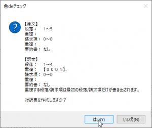 Wordで動く翻訳チェックソフト「色deチェック」の対訳表作成は、特許明細書の段落番号を基準にして実施されます。