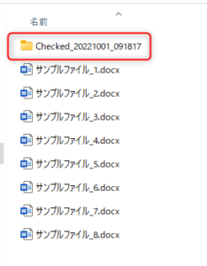 チェックが終了すると処理対象フォルダ内にチェック結果ファイルが保存されたフォルダが作成されます。チェックをした時刻がフォルダ名になります。