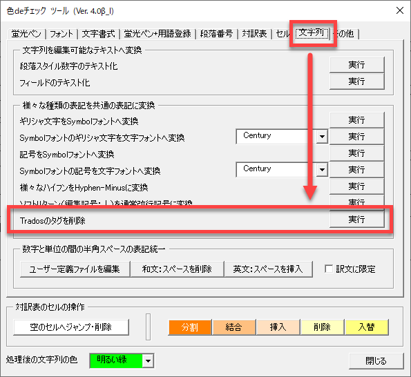 [文字列]タブの以下の[実行]ボタンをクリックしてください。