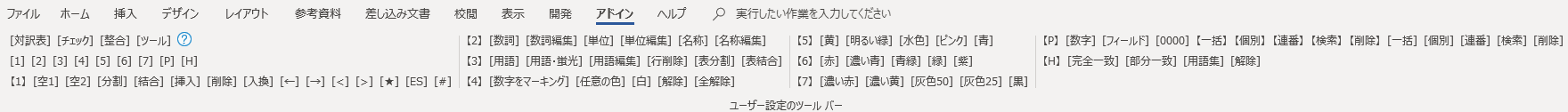 このままでは、[アドイン]タブの表示領域を占有してしまうので、必要なボタンだけを表示させる方法を紹介します。