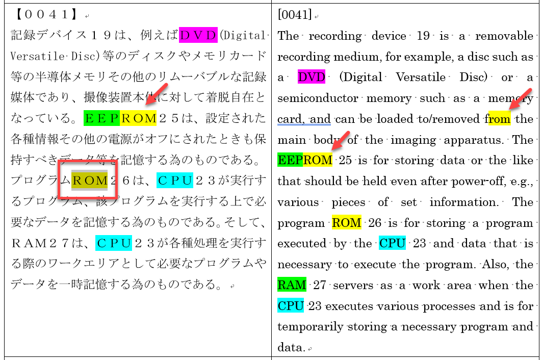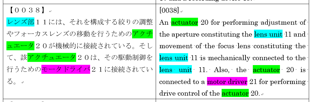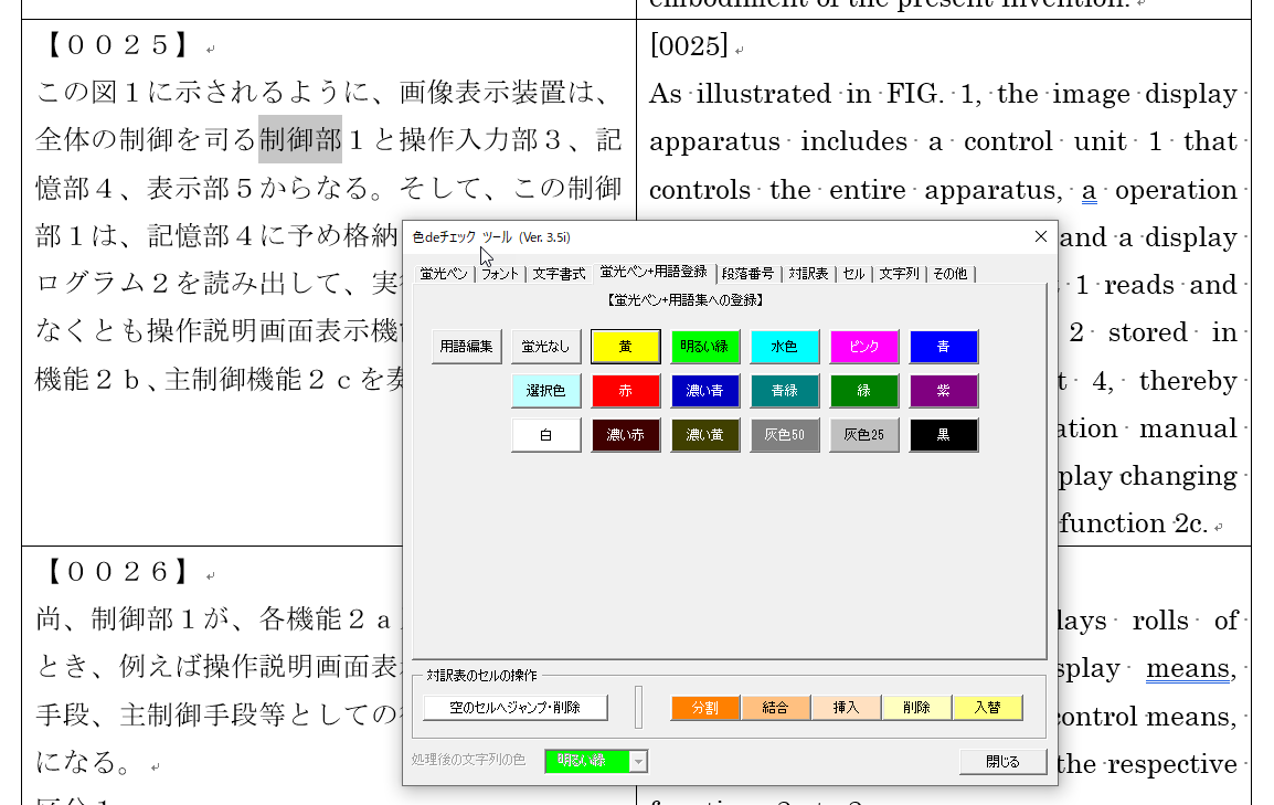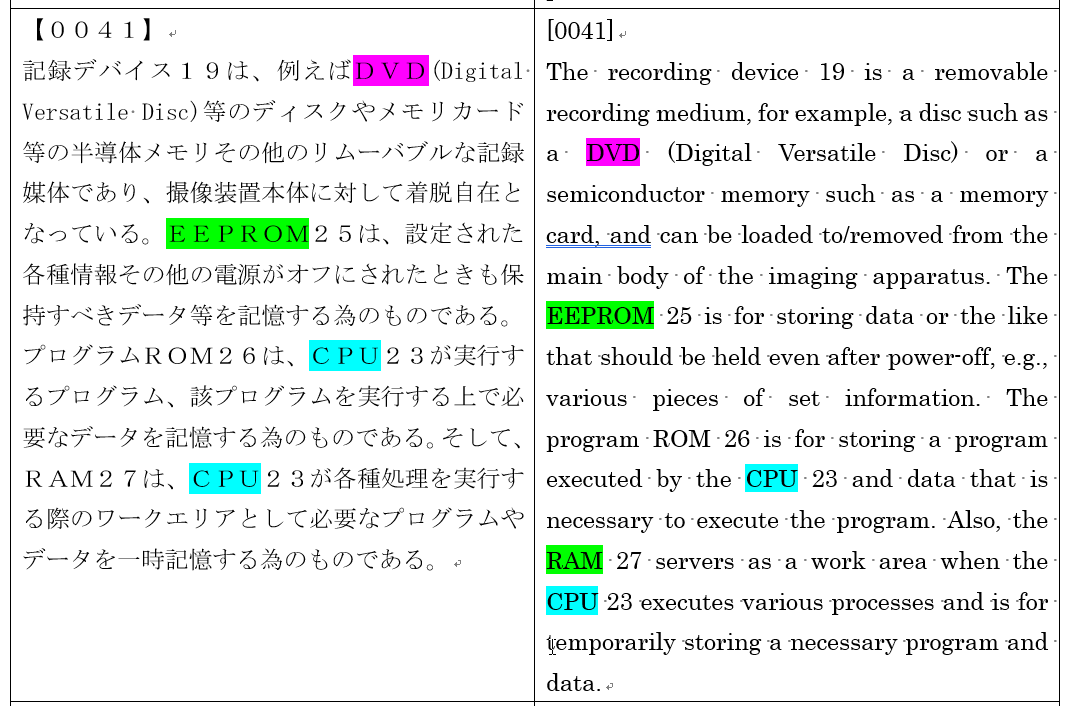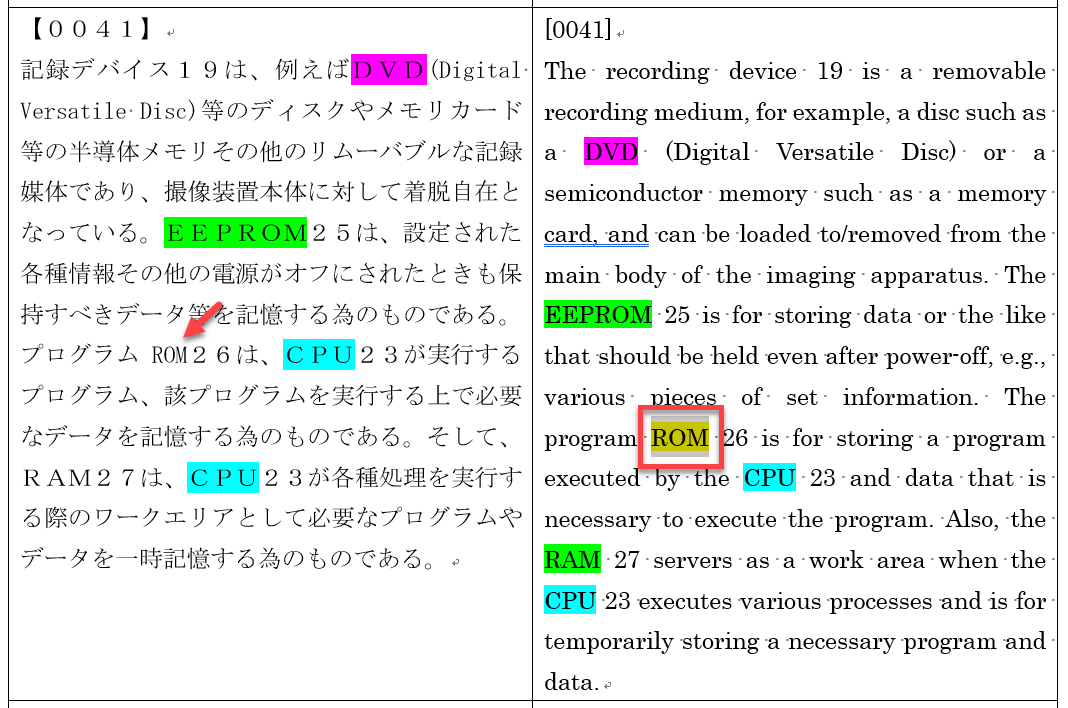 アルファベットは原文と訳文の両方に使われています。この場合、和文中のキーワードを選択して着色すれば英文中のキーワードも一緒に着色できます。所在の確認がすぐにできて便利ですよね。