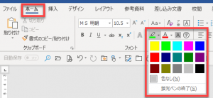着色の色は、[ホーム]タブで選択されている蛍光ペンの色を使います。