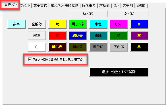 (参考:蛍光ペン着色の文字色を見やすく変更する)