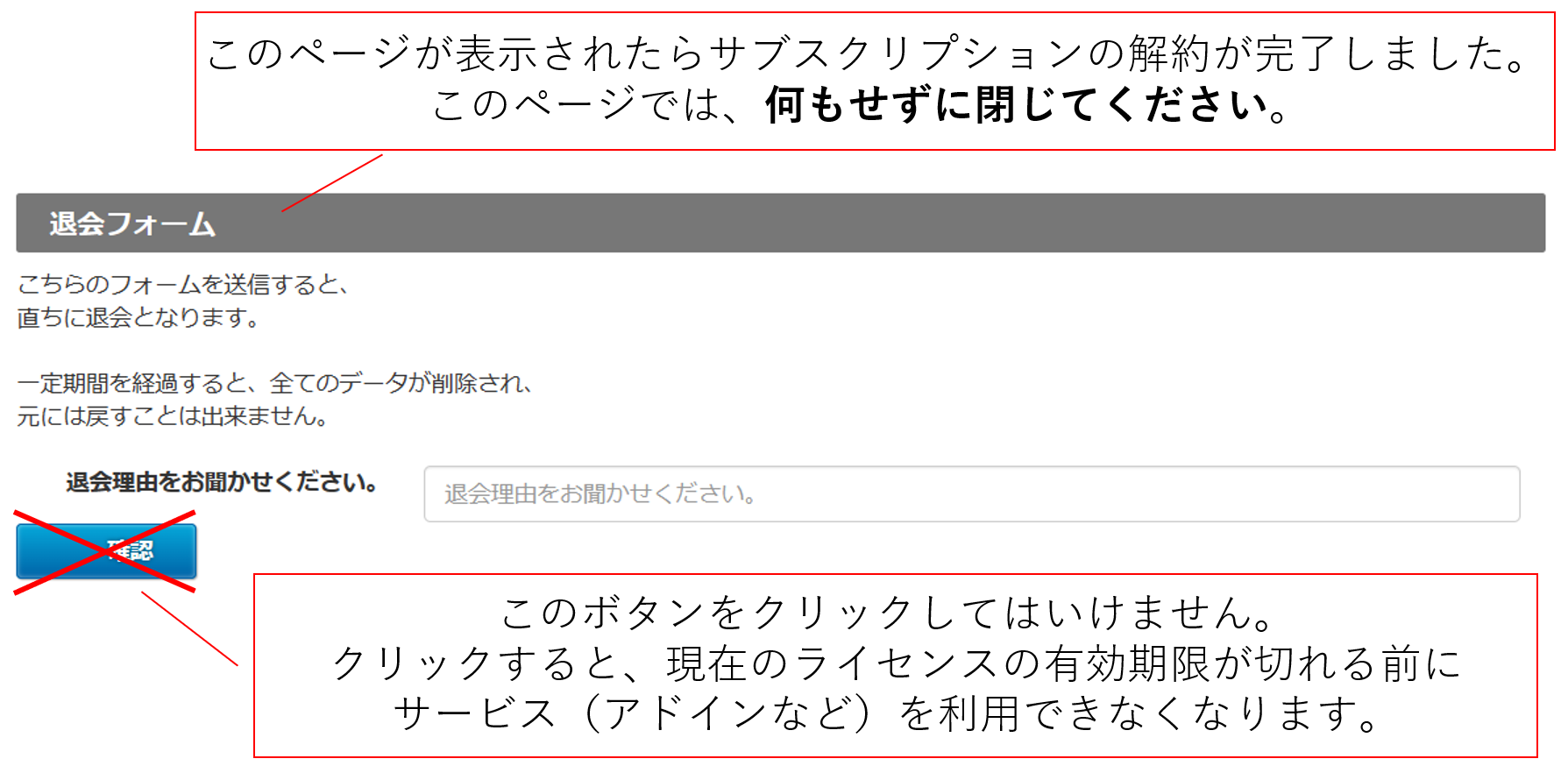 自動更新のお申し込みの方法(クレジットカード決済、PayPal決済)により表示が異なります。いずれもキャンセルボタンをクリックして自動更新を停止します。