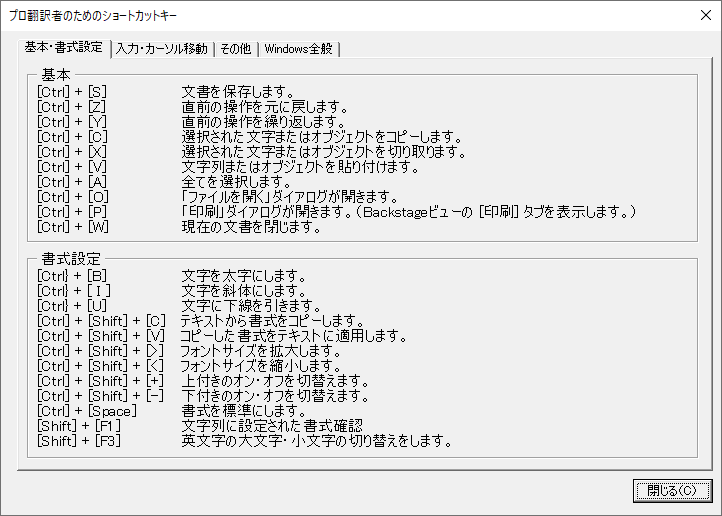 忘れたらすぐに思い出せるように、翻訳者やライター向けのおすすめショートカットキーをまとめました。