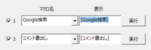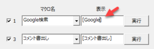 たとえば、「Google検索」という名称のマクロを選択した場合には、[Google検索]と[表示]欄に入力されます。