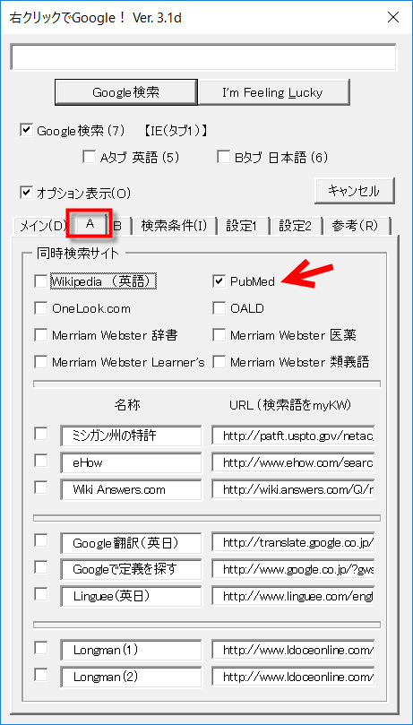 Google検索以外にデフォルトで用意された各種辞書サイトも同時に検索できます。また、カスタマイズすれば普段から使っているお気に入りの検索サイトやポータルサイトも同時検索サイトとして登録できます。(例:日経新聞のサイト内検索機能を追加する)