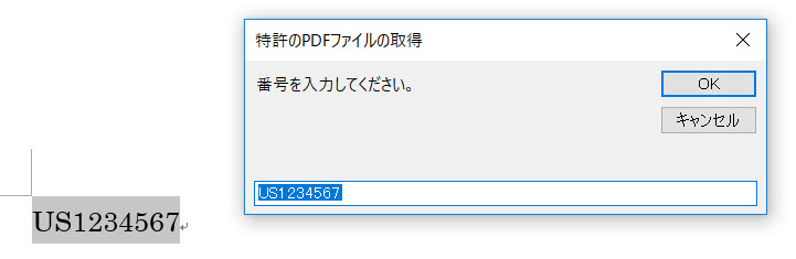 文書中に特許文献番号が出てきたら、それを選択して GP ボタンをクリックします。