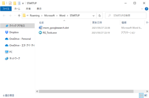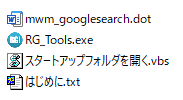 4.このフォルダに「mwm_googlesearch.dot」と「RG_Tools.exe」をドラッグして移動します。「mwm_googlesearch.dot」と「RG_Tools.exe」をコピーして貼り付けてもかまいません。