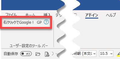 [アドイン]タブに以下のボタンが表示されたらインストールが成功です。