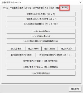 - Office更新に伴い発生するバグ対策(マクロ名が日本語では不具合が生じる場合があるため、マクロ名を英語に修正)