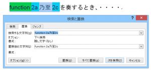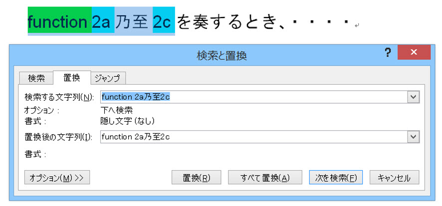 文字列を選択してマクロを実行すると、選択されている文字列が、[検索する文字列]欄と[置換後の文字列]欄に自動的に入力されます。