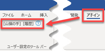 [アドイン]タブに以下のボタンが表示されたらインストールが成功です。