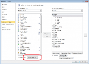 (2)開いた「Wordのオプション」ダイアログボックスで、「ユーザー設定」ボタンをクリックします。
