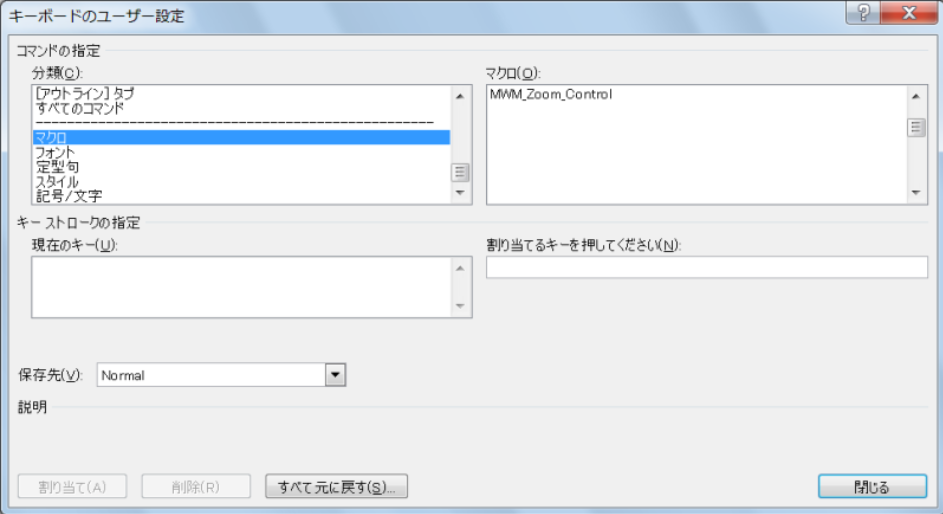 ①「マクロ(O)」欄で、「MWM_Zoom_Control」を選択します。
