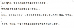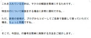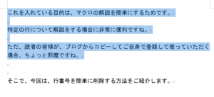 テキストをボックス選択する方法です。用途は、こちらの「マクロの行番号を削除する方法」をご覧ください。