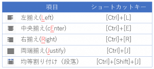 段落の文字を左揃えにしたり中央揃えにしたりするのに便利なショートカットキーです。