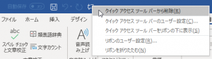 クイックアクセスツールバーで削除対象のアイコン上で「右クリック」すると[クイックアクセスツールバーから削除]メニューが表示されるのでこれをクリックします。