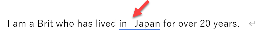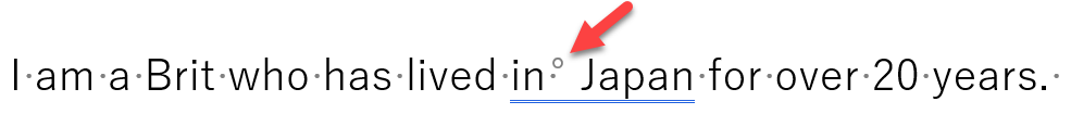 編集記号をすべて表示しない場合には、以下のようにスペースになっています。なので通常のスペースと見分けがつきません。この場合にはほかで挿入されている箇所がどこにあるのかわかりませんね。