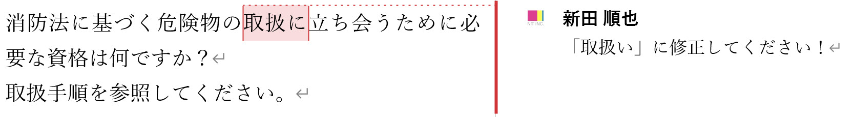 「取扱」というキーワードに「取扱い」とコメントを挿入したいと思いExcelのリストを作成しました。この場合、「取扱手順」内にある「取扱」を除外したいのですが、設定方法を教えてください。