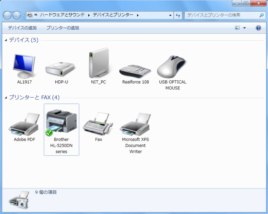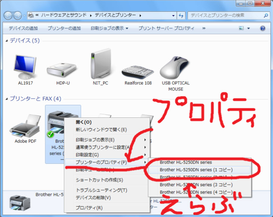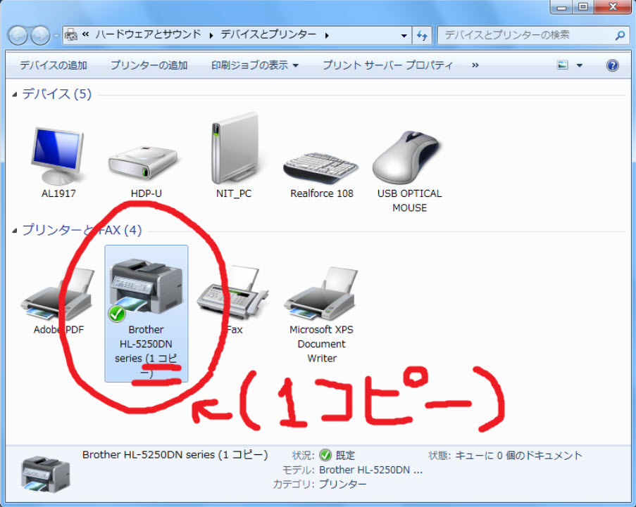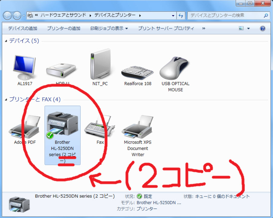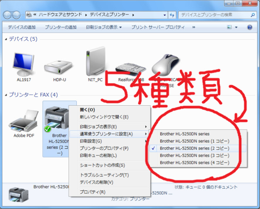 たとえば、1つのプリンター(私の場合、モノクロレーザープリンター:Brother HL-5250DN)に、5つのドライ-バーを設定します。