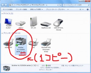 これを選択すると、さきほどデフォルトに設定したプリンターになります。