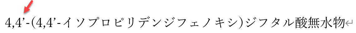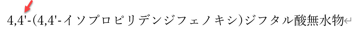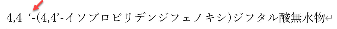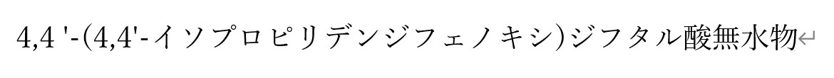 4,4'-(4,4'-Isopropylidenediphenoxy)diphthalic Anhydride」の和名である「4,4'-(4,4'-イソプロピリデンジフェノキシ)ジフタル酸無水物」で使われているアポストロフィを置換します。
